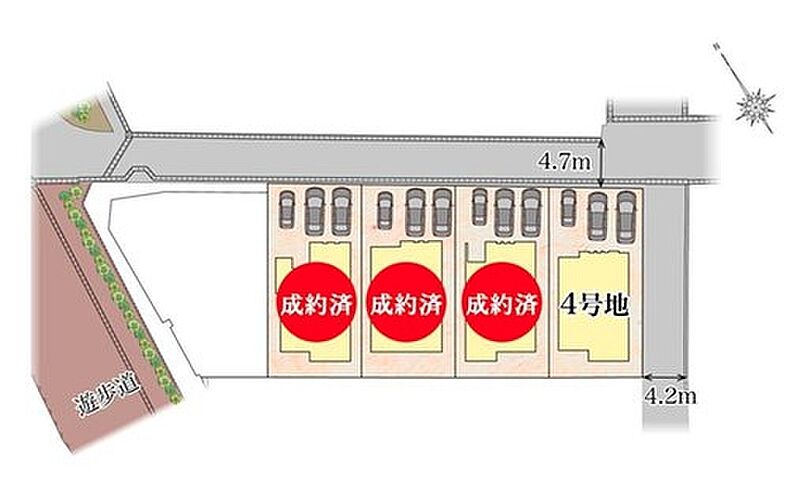 | 駐車場 | 3台 | 道路の幅員 | 北東側4.7m、南東側4.2m |