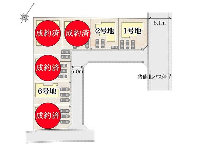 | 駐車場 | 3台 | 道路の幅員 | 南側6m、東側8.1m |