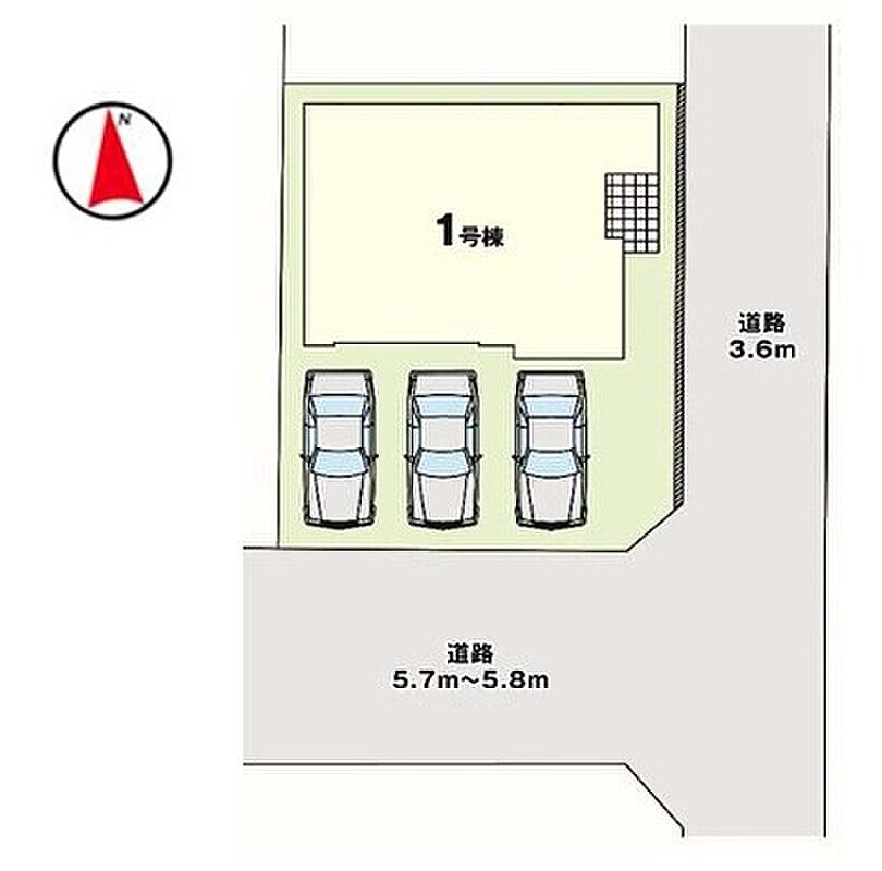 | 駐車場 | 3台 | 道路の幅員 | 角地:南側5.8m公道、東側3.6m公道 |
