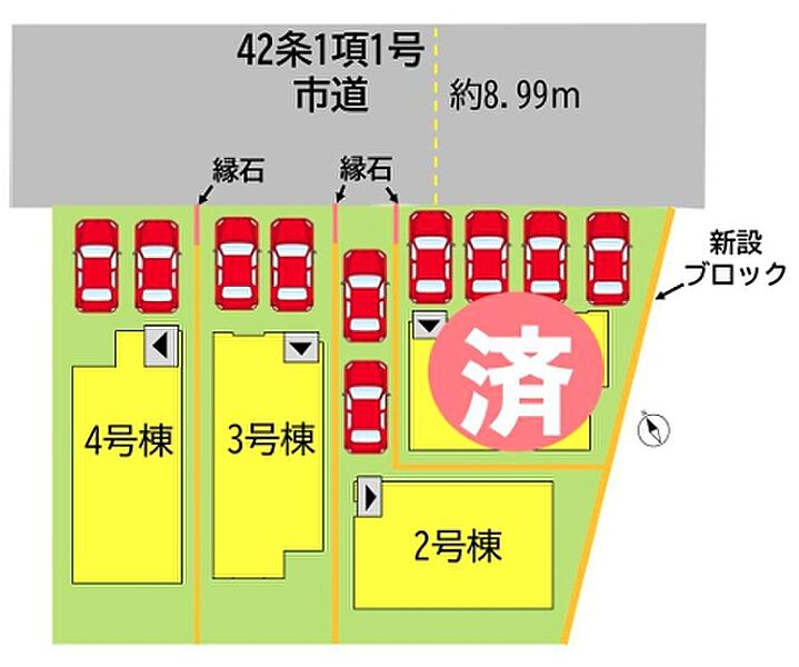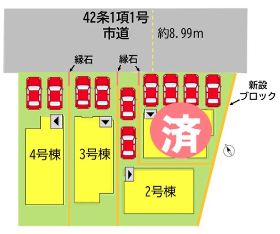 | 駐車場 | 2台 | 道路の幅員 | 北東側8.99m~9.00m公道 |