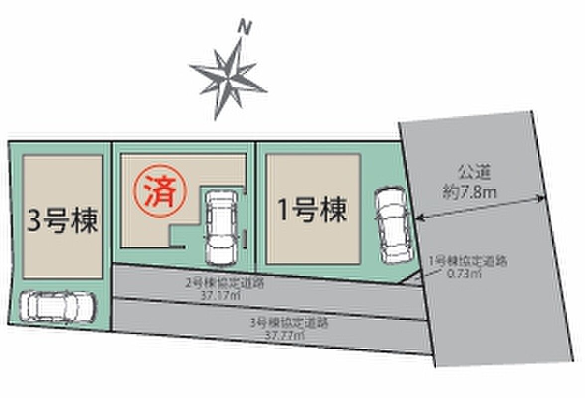 | 駐車場 | 1台 | 道路の幅員 | 東側7.8m公道 |