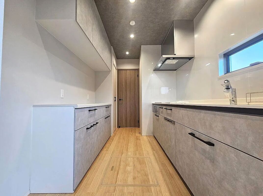 魅力2 ●キッチンと同じテイストのカップボード付き! お洒落で統一感があります♪
