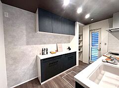 魅力2 ●キッチンと同じテイストのカップボード付き! お洒落で統一感があります♪
