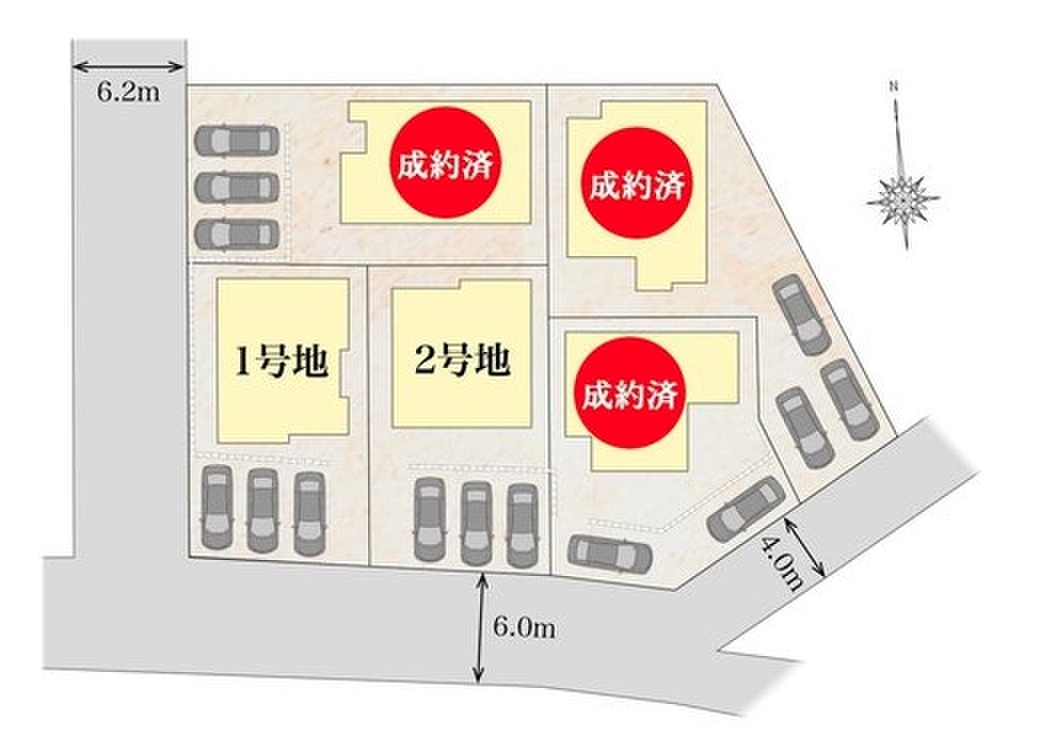 | 駐車場 | 3台 | 道路の幅員 | 南側6m公道、西側6.2m公道 |