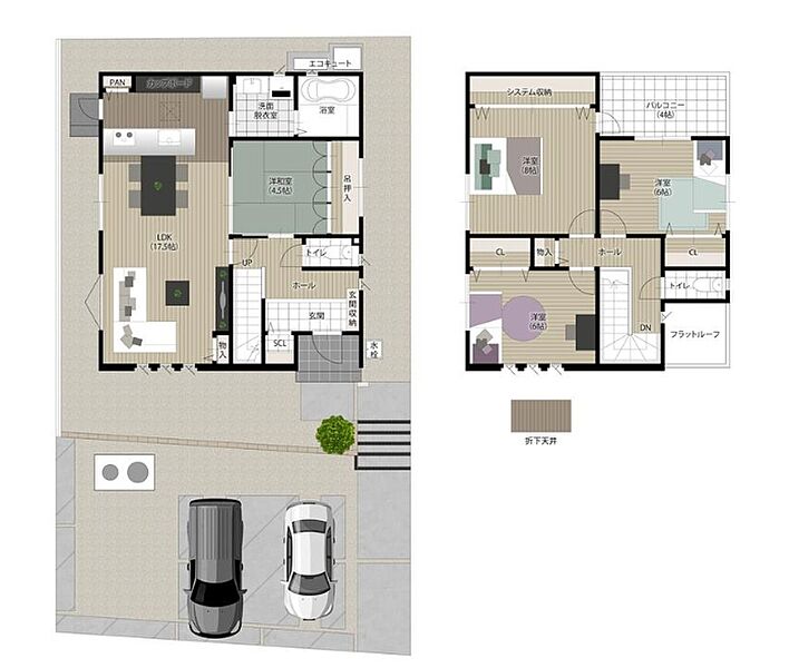 | 建物面積 | 107.64m2・113.44m2 | 土地面積 | 171.01m2・178.23m2 |