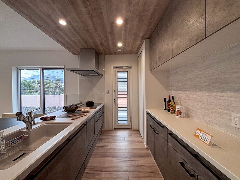 魅力2 ●キッチンと同じテイストのカップボード付き! お洒落で統一感があります♪