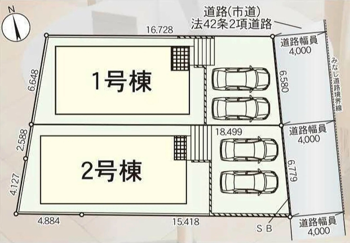| 駐車場 | 2台 | 道路の幅員 | 東側4m公道 |
