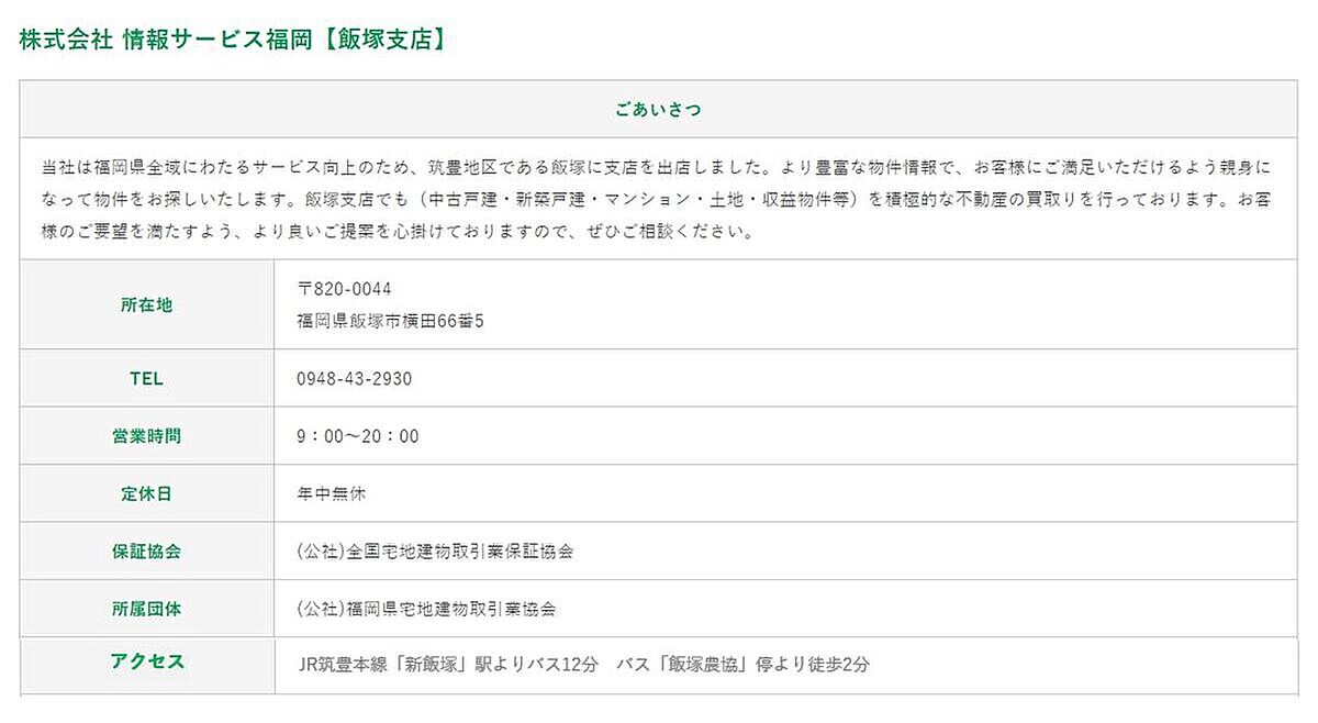 | 売主 | 取引態様 | 株式会社情報サービス福岡 飯塚支店(仲介) | |