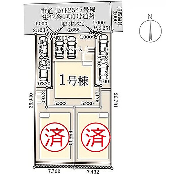 | 駐車場 | 2台 | 道路の幅員 | 北側6m公道 |