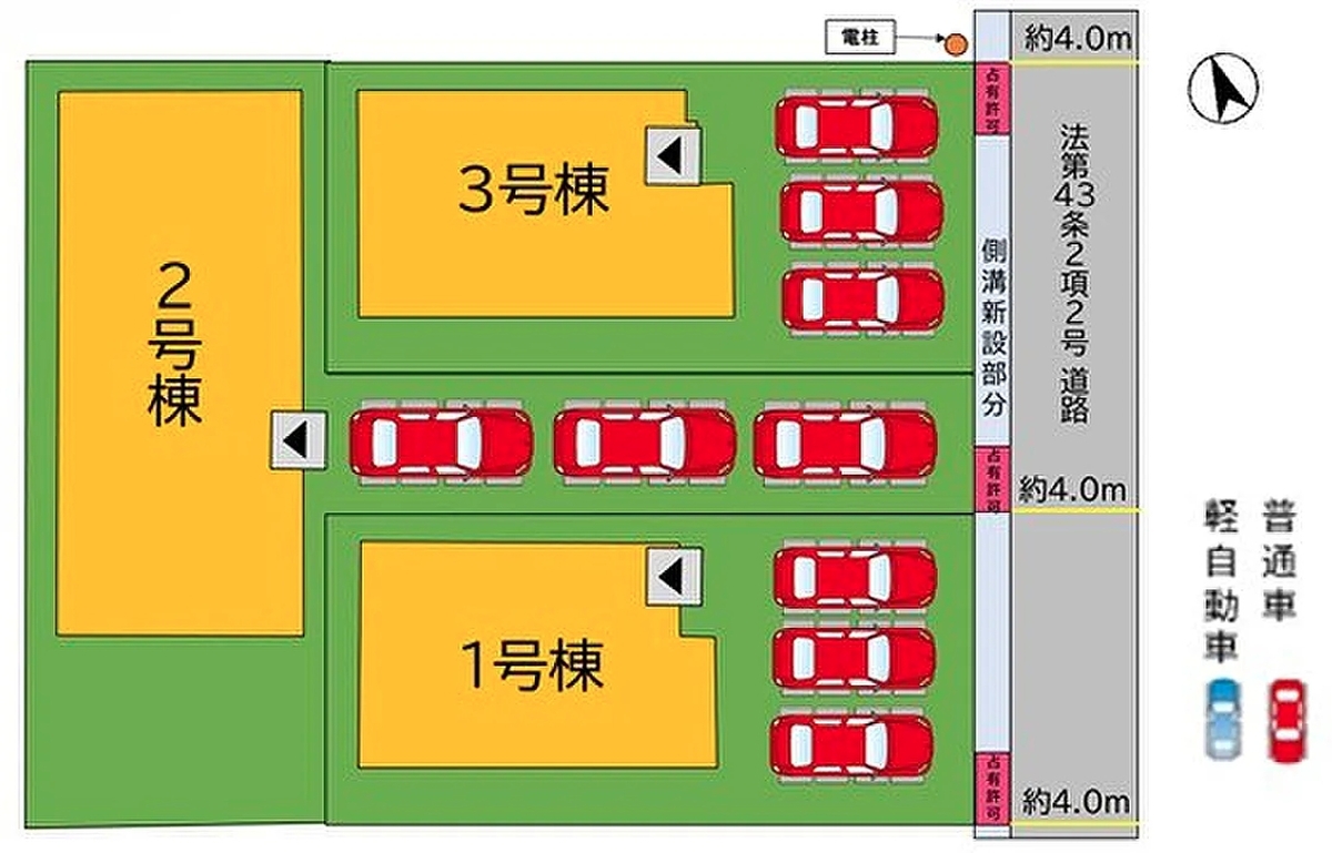 | 駐車場 | 3台 | 道路の幅員 | 南東側4m公道 |