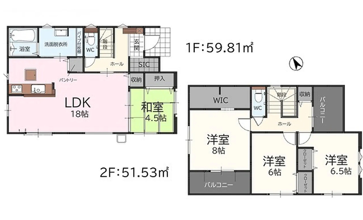 【1号棟】間取図 間取り 4LDK+WIC 価格 2598万円 建物面積 111.34m2 土地面積 165.88m2 -