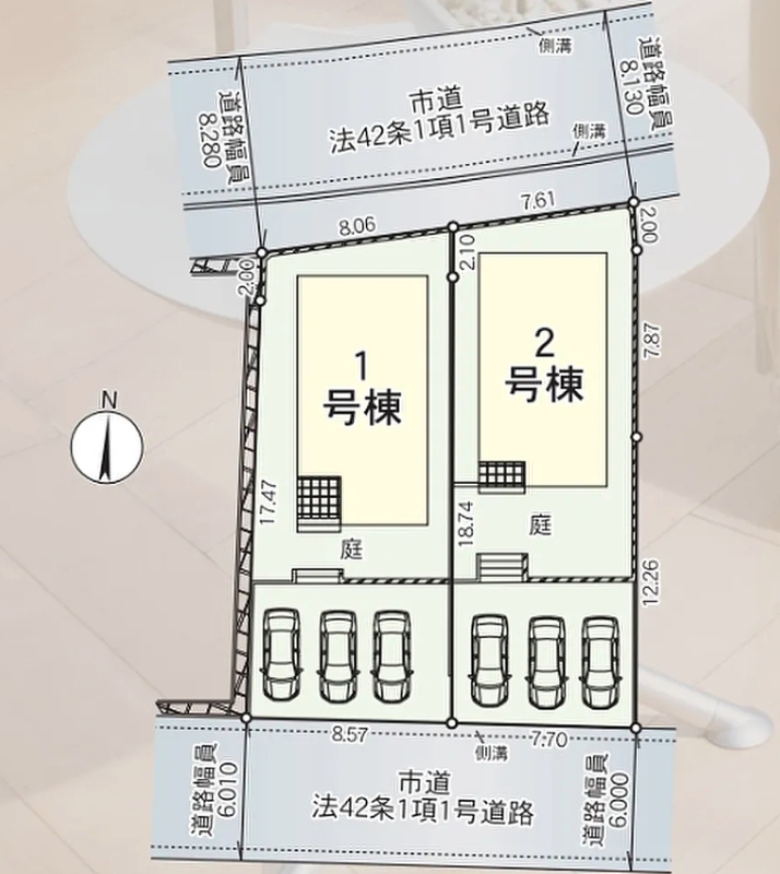 | 駐車場 | 3台 | 道路の幅員 | 南側6m公道、北側8.13~8.28m公道 |