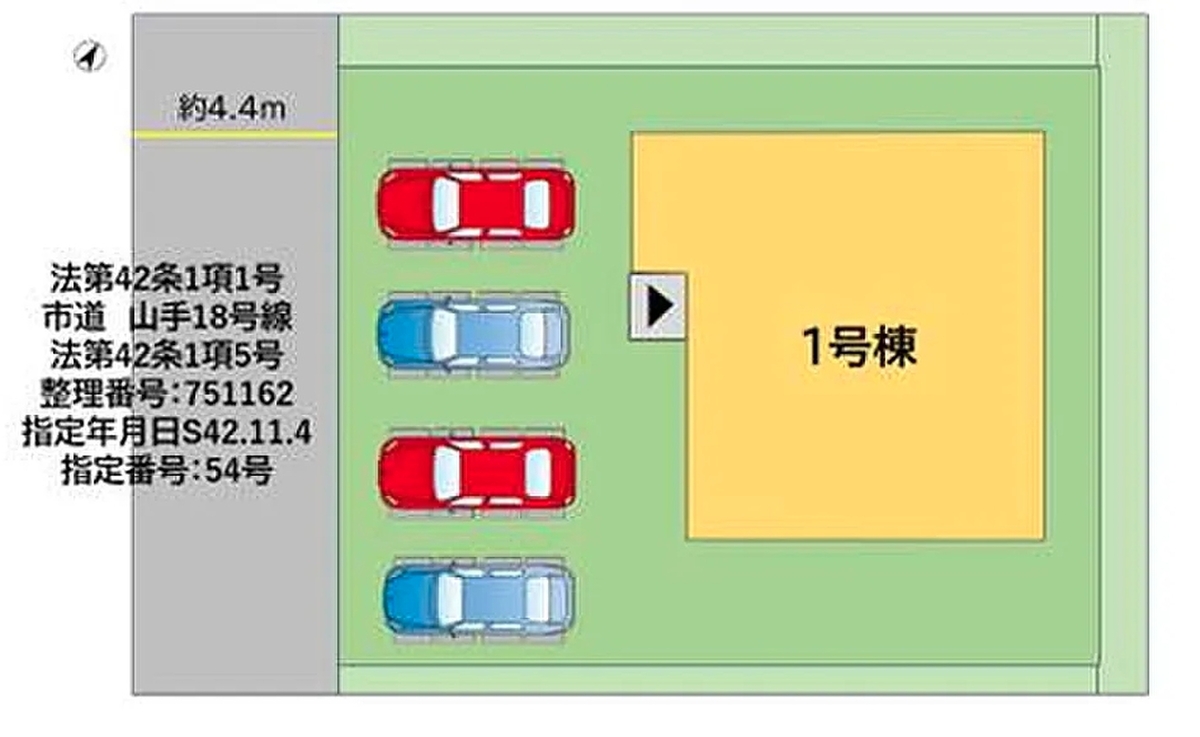 | 駐車場 | 4台 | 道路の幅員 | 西側4.4m公道 |