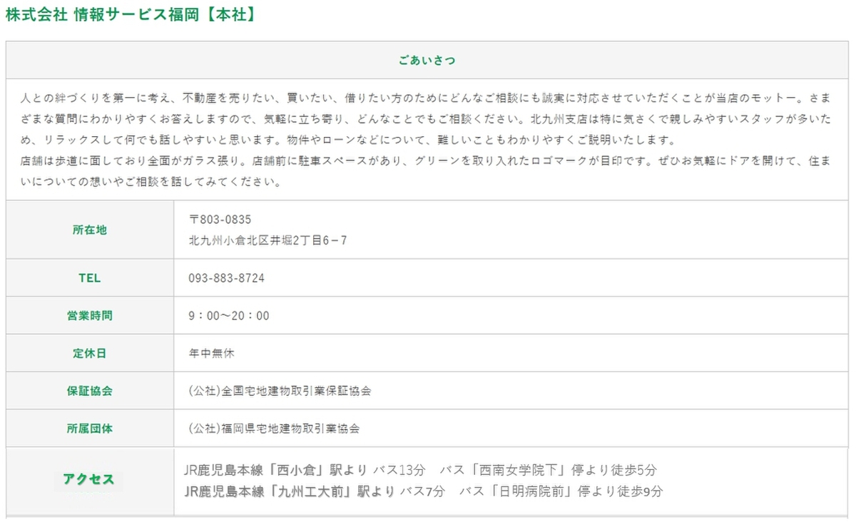 | 売主 | 取引態様 | 株式会社情報サービス福岡 北九州本店(仲介) | |