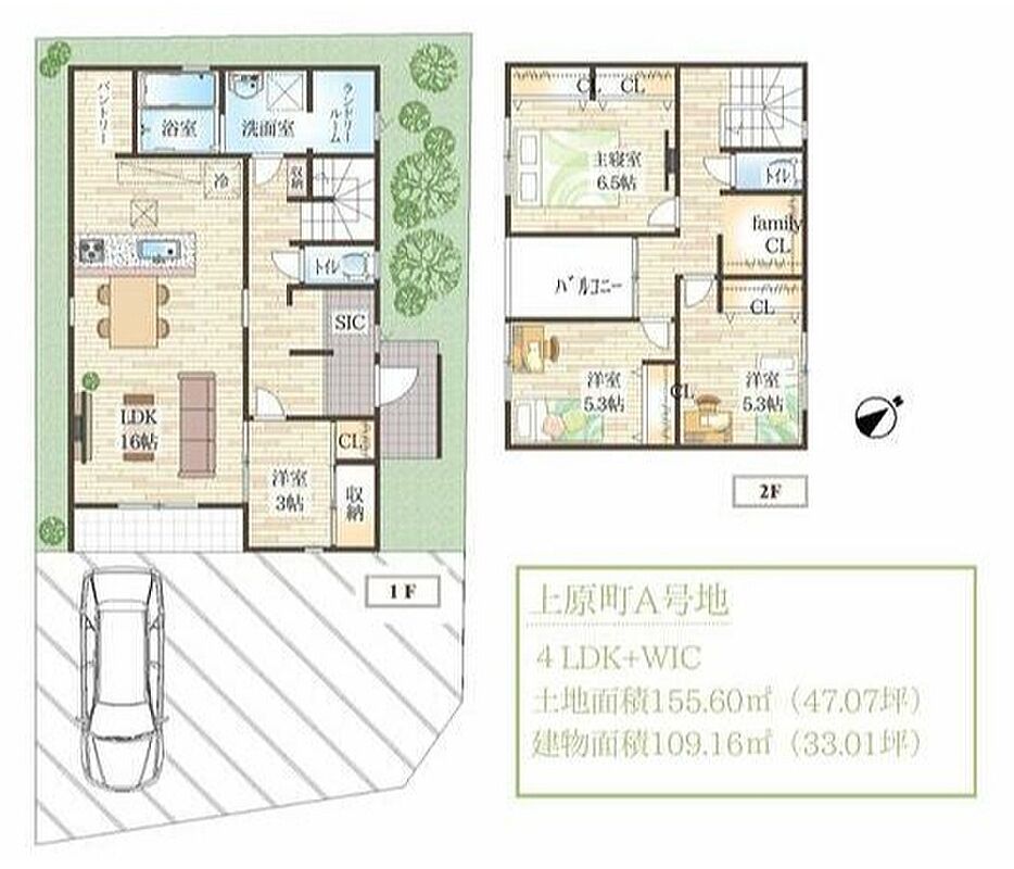 | 建物面積 | 109.16m2 | 土地面積 | 155.60m2 |