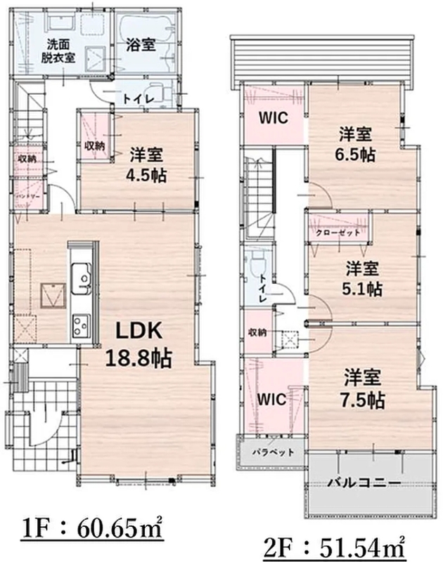 | 建物面積 | 112.19m2・114.85m2 | 土地面積 | 133.97m2・143.24m2 |