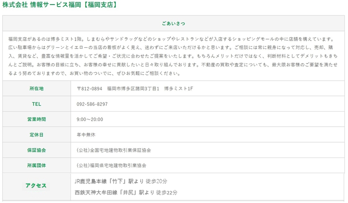 | 売主 | 取引態様 | 株式会社情報サービス福岡 福岡支店(仲介) | |