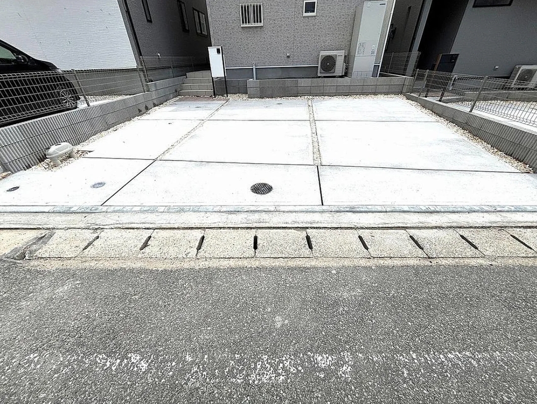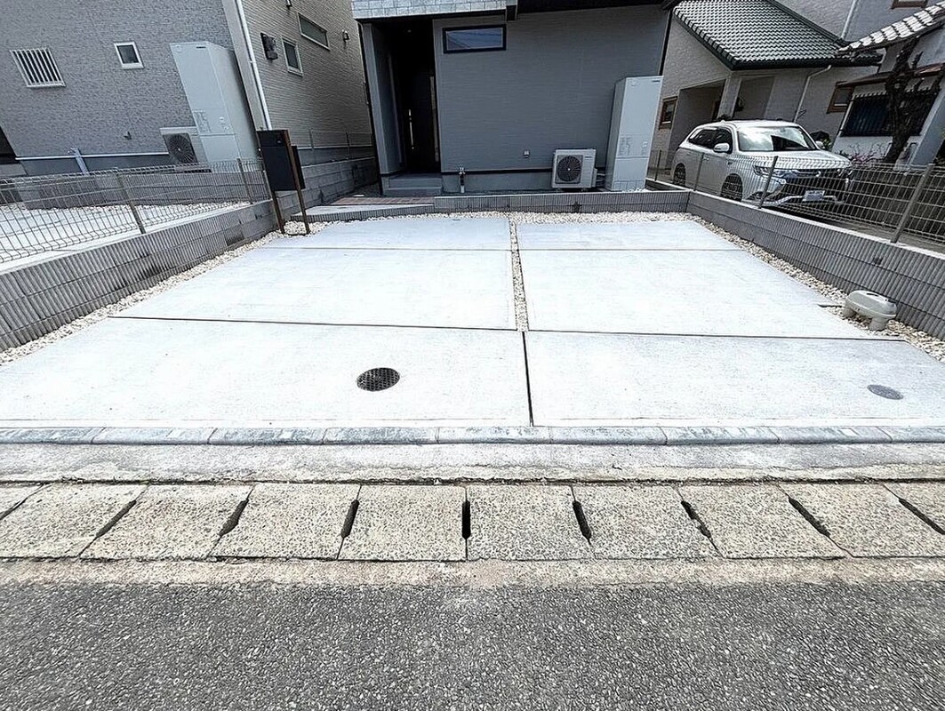 ■駐車並列2台可!前面道路広く駐車楽々、陽当たり良好、開放的!