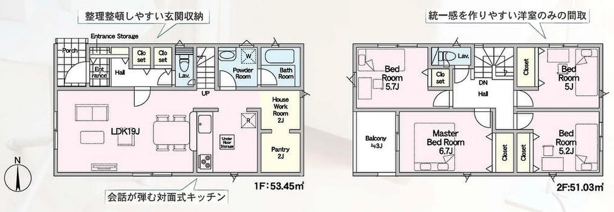 【1号棟】キッチン横にパントリーがあり便利! 間取り - 価格 未定 建物面積 - 土地面積 - -