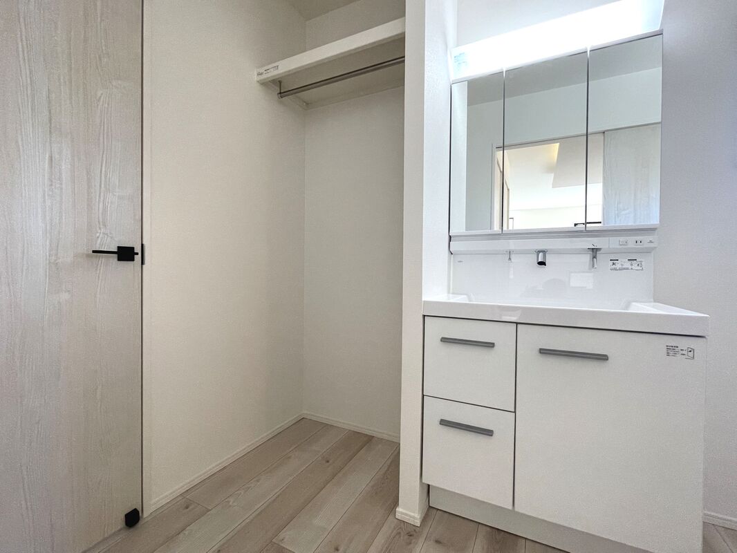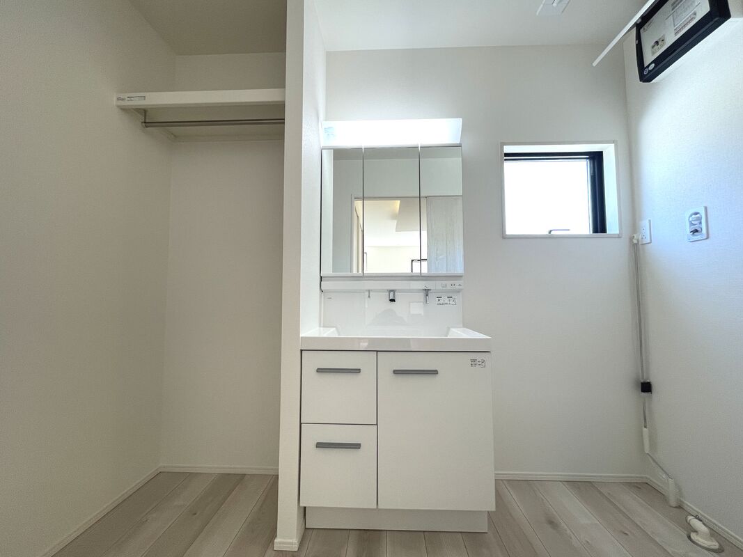 魅力2 ●広々とした洗面脱衣室が魅力的!便利なパイプ付き枕棚有り♪