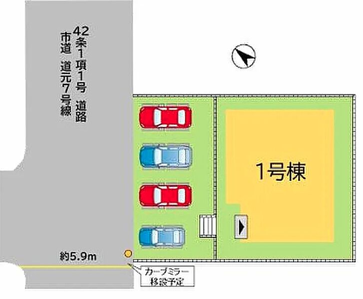 | 駐車場 | 4台 | 道路の幅員 | 北西側5.9m公道 |