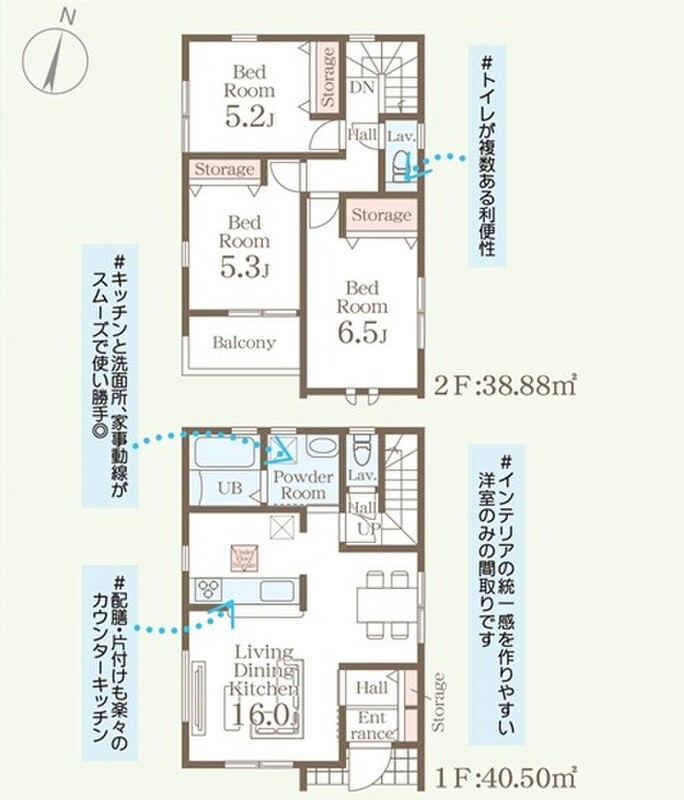 【2号棟】間取図 間取り 3LDK 価格 3980万円 建物面積 79.38m2 土地面積 106.51m2 -