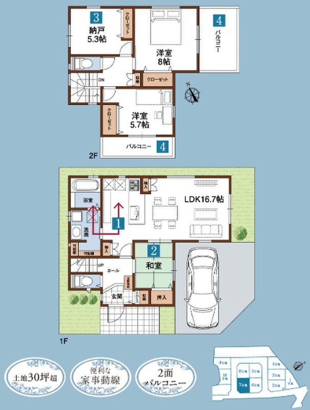 (2)柴野工務店の開発分譲地だから道路も広く新しく。陽当たりや車の停めやすさはお墨付き。