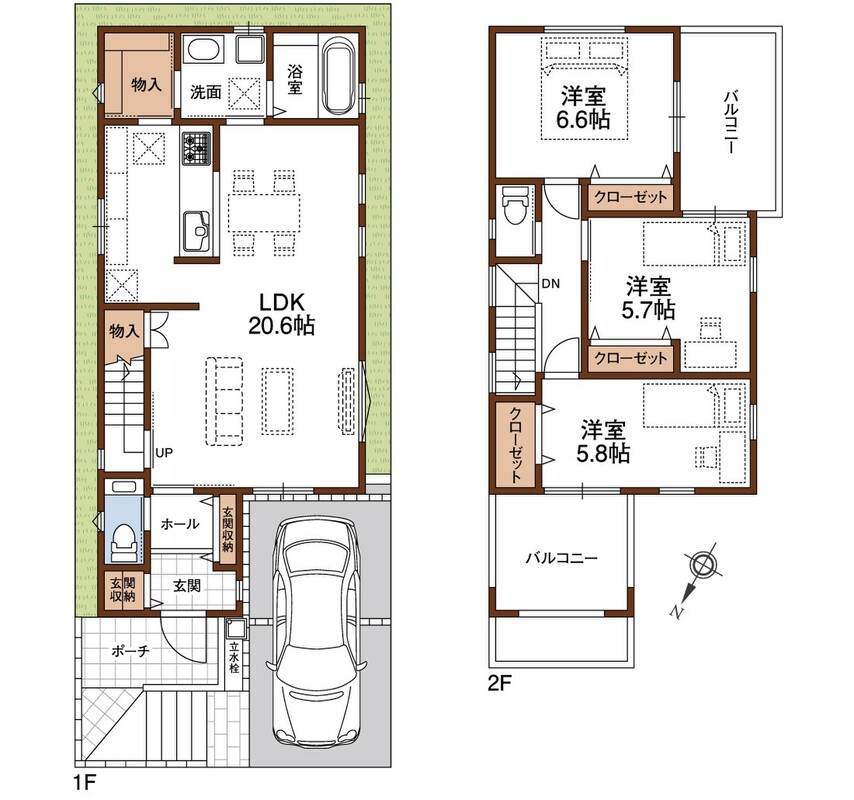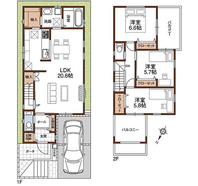 1号・2号地共にBIGバルコニーを2か所設置!