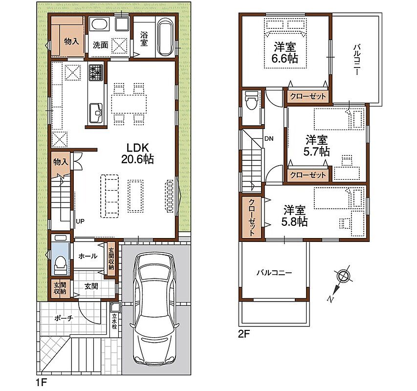 - ※完成予想図やCG合成画像は、門塀・植栽・庭・外観等、実際とは多少異なる場合があります。