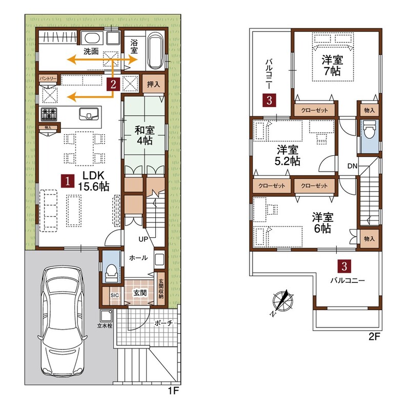 2号地は和室コーナーを設けた子育て世代に優しい間取り