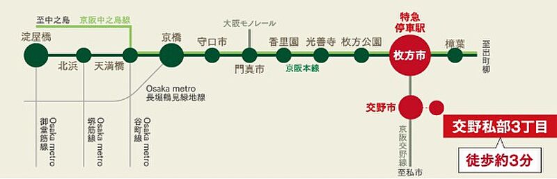 魅力1 通勤通学の味方!京阪交野線【交野市駅】徒歩3分の快適分譲地