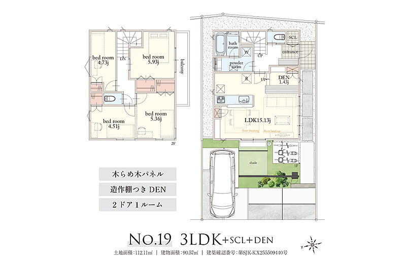 | 建物面積 | 89.02m2~90.57m2 | 土地面積 | 112.10m2~112.11m2 |