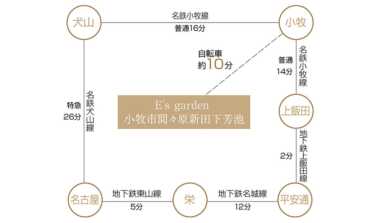 名鉄小牧線「小牧原」駅 (約2,420m 自転車約10分)