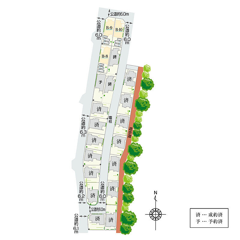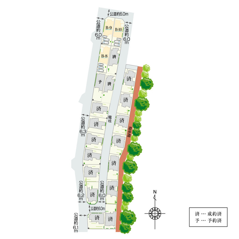 | 駐車場 | 3台(B-8・B-9・B-10棟(3台)) | 道路の幅員 | 北・西・東側幅員約6.0m公道 |