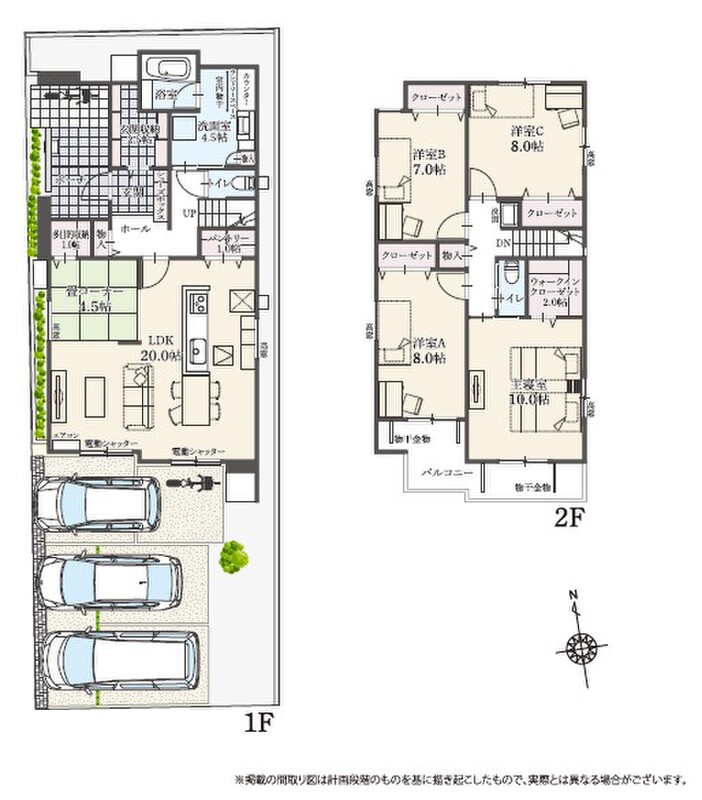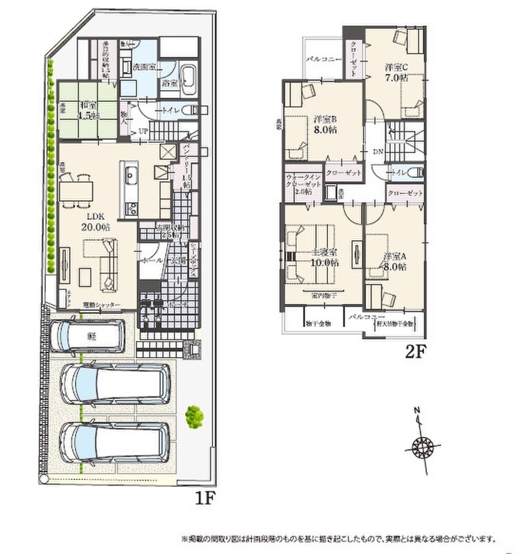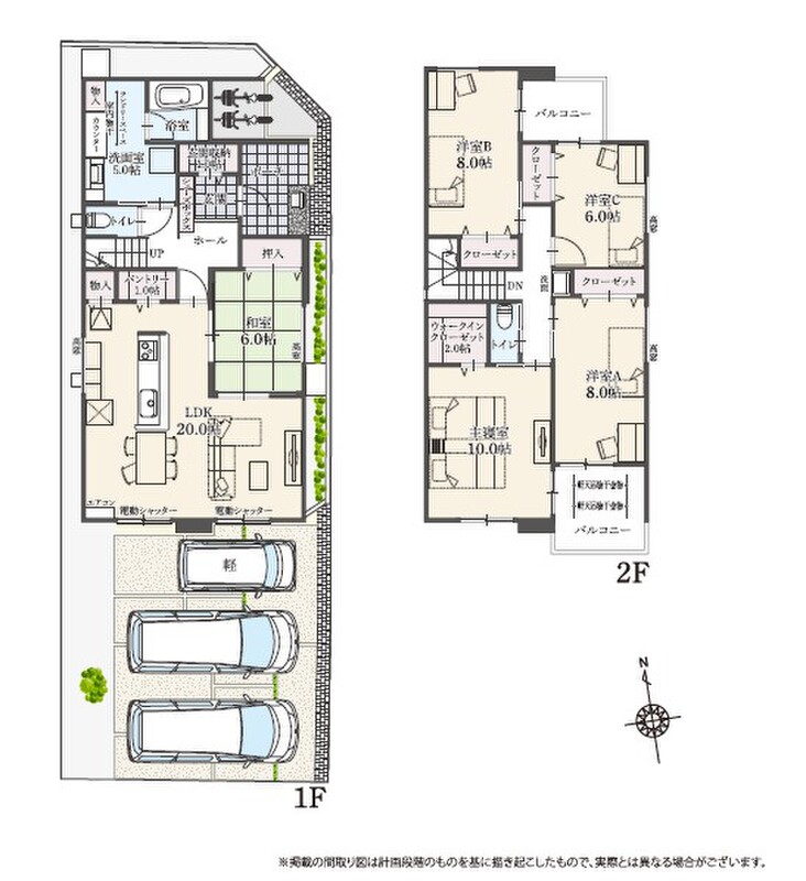 - ※完成予想図やCG合成画像は、門塀・植栽・庭・外観等、実際とは多少異なる場合があります。