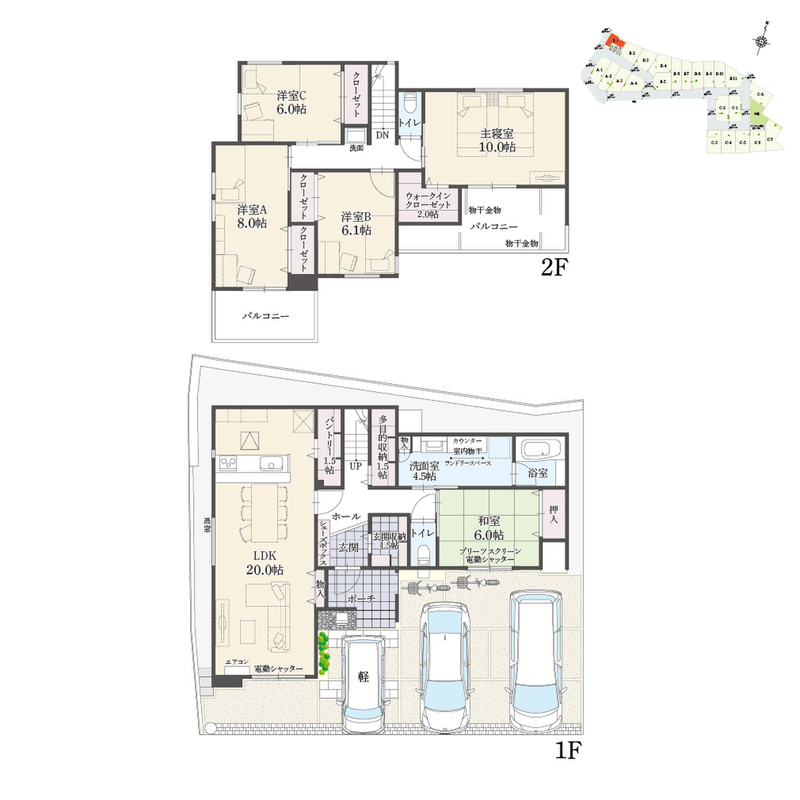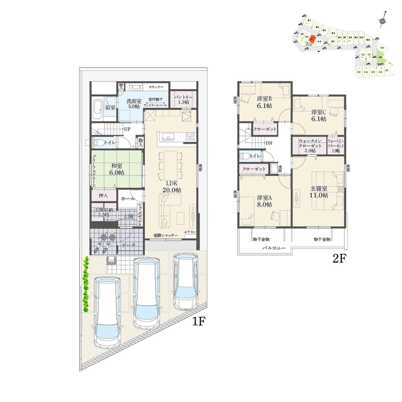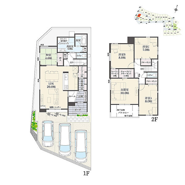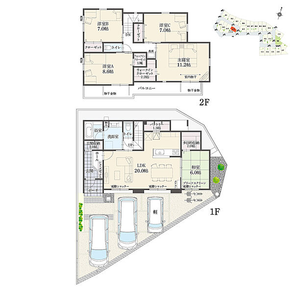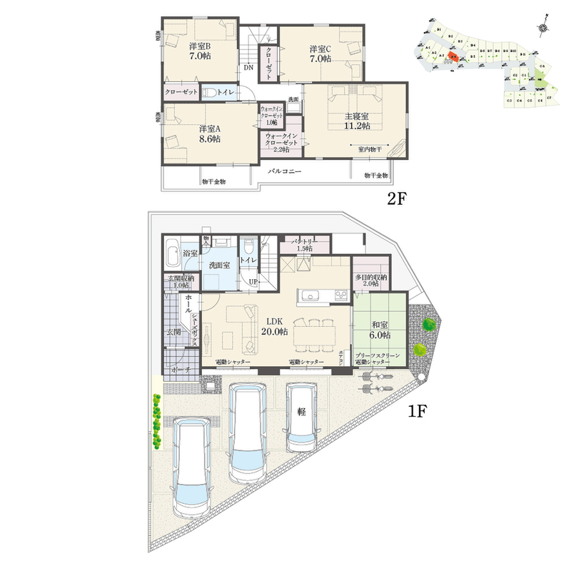 | 間取り | 5LDK | 建物構造 | A-1・3棟・B-1・2・3・5:木造瓦葺2階建、A-2・4棟:木造瓦及びガルバリウム鋼板葺2階建 |