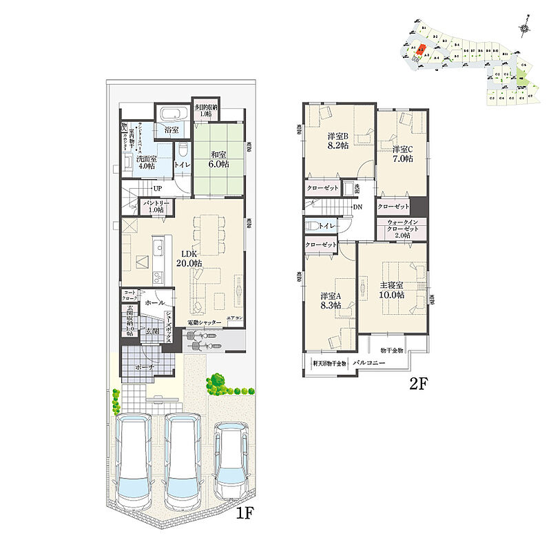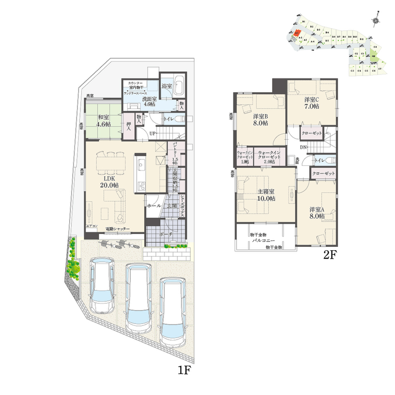 | 駐車場 | 3台 ~ 4台(A-1~4棟・B-1・2・5棟(3台)、B-3棟(4台)) | 道路の幅員 | 公道約3.2m~7.3m |