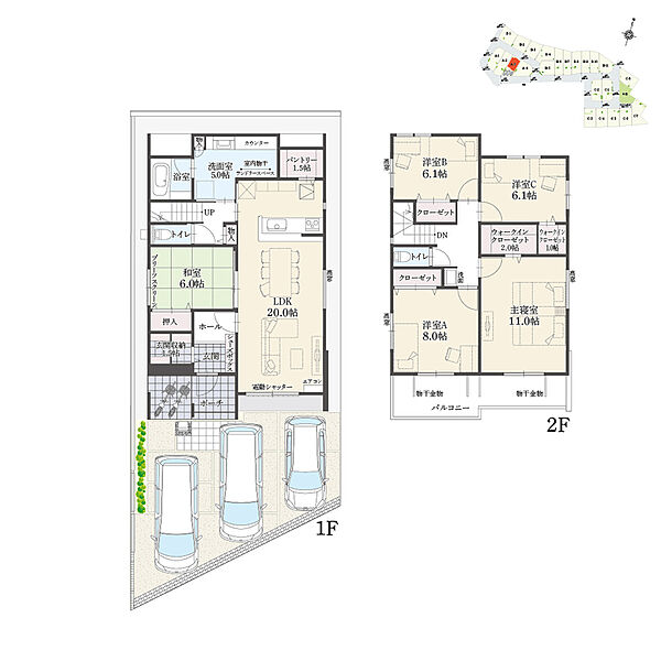 | 建物面積 | 140.46m2(42.48坪)~142.58m2(43.13坪) | 土地面積 | 155.03m2(46.89坪)~162.00m2(49.00坪) |
