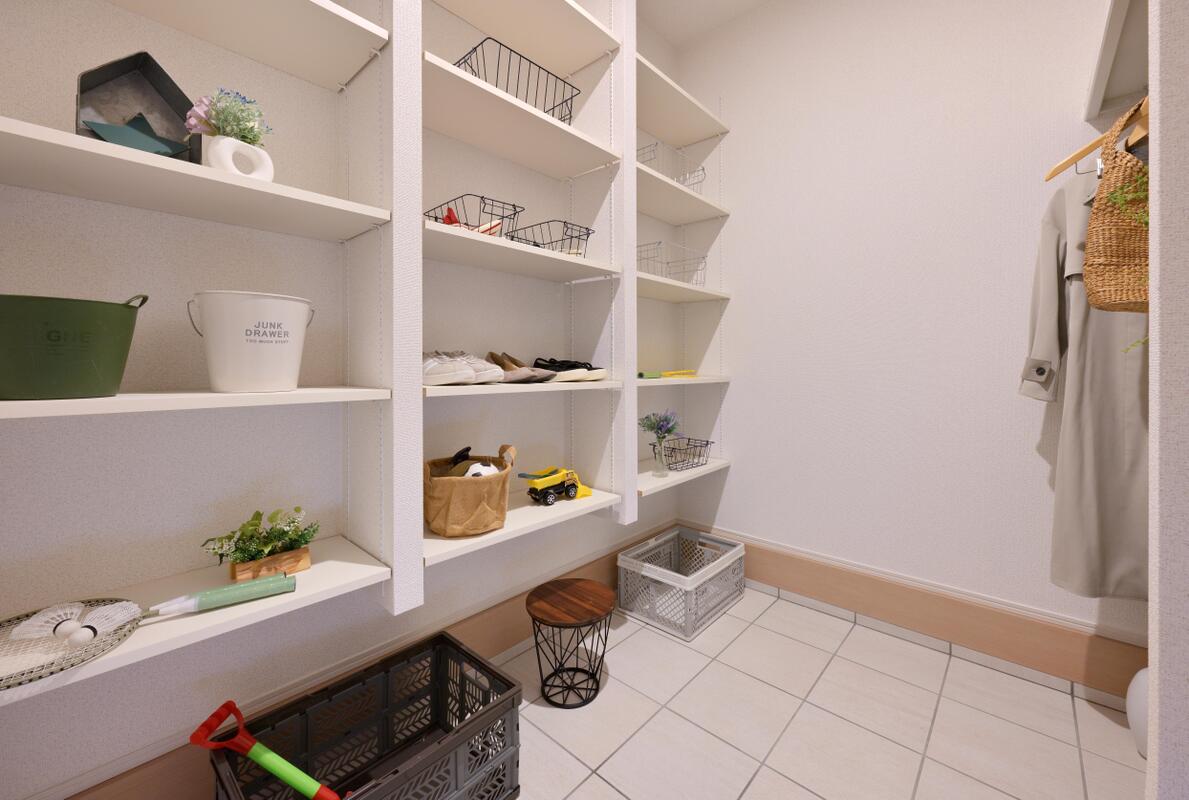 パントリーは全邸標準仕様(形状は各邸異な...