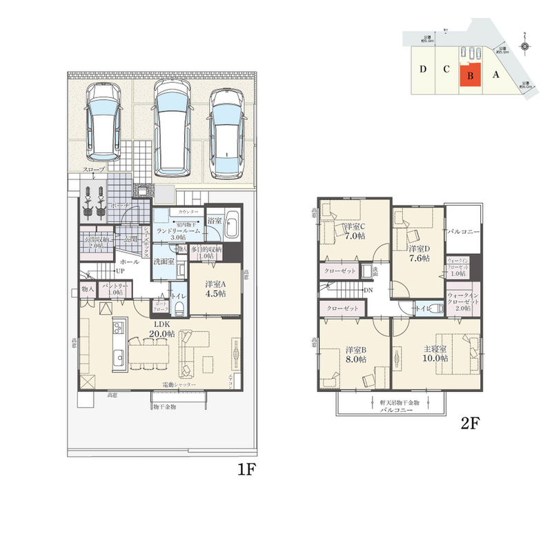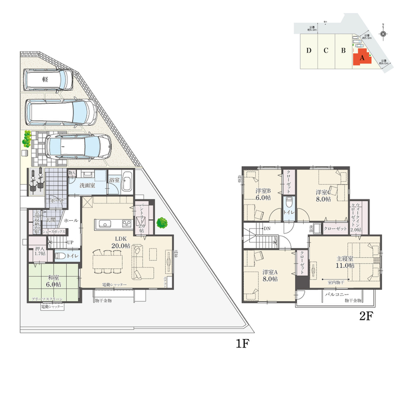 | 間取り | 5LDK | 建物構造 | A・B・D棟:木造瓦及びガルバリウム鋼板葺2階建、C棟:木造瓦葺2階建 |