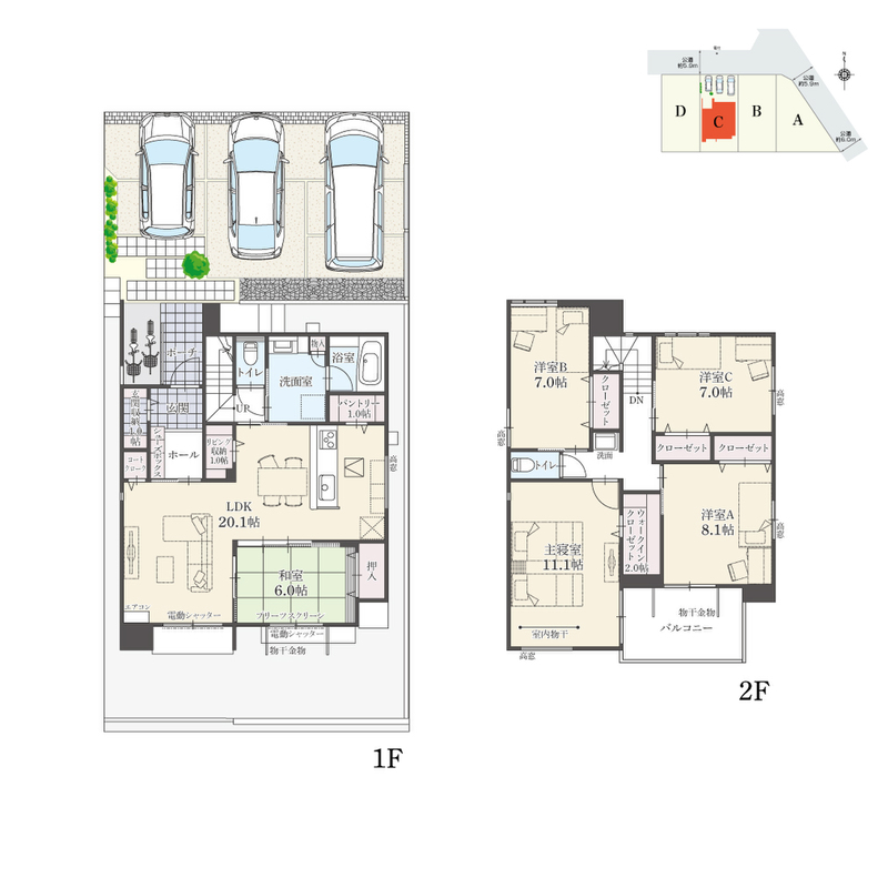 | 駐車場 | 3台 | 道路の幅員 | 公道:北側約5.9m・北東側約5.9~6.0m |