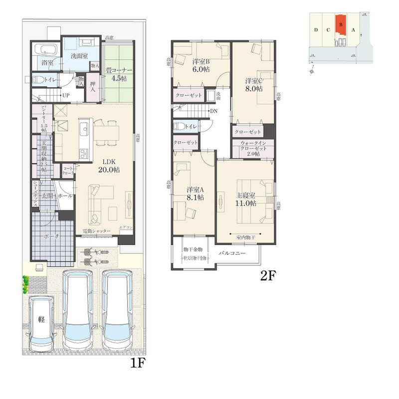 ・全棟並列3台駐車可能。