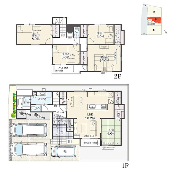 | 建物面積 | 135.56m2(41.00坪)~138.37m2(41.85坪) | 土地面積 | 163.92m2(49.58坪)~163.94m2(49.59坪) |