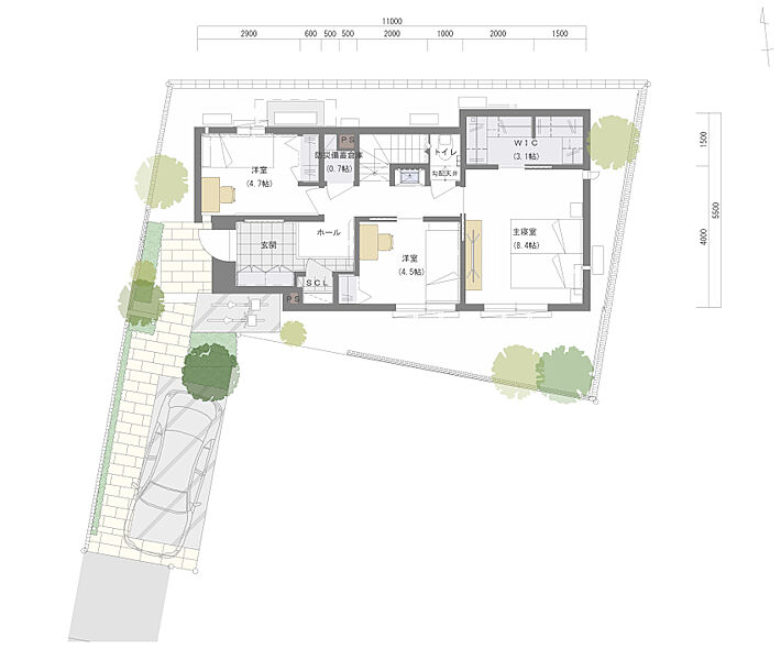 - ※完成予想図やCG合成画像は、門塀・植栽・庭・外観等、実際とは多少異なる場合があります。