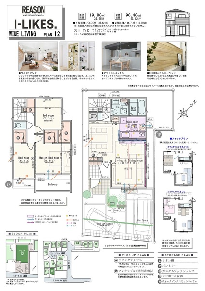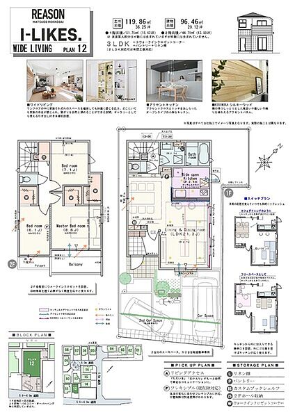 | 建物面積 | 95.43m2~98.53m2 | 土地面積 | 119.86m2~219.57m2 / 私道負担なし |