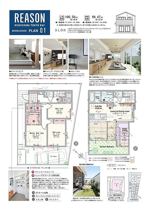 | 建物面積 | 99.47m2~101.41m2 | 土地面積 | 100.49m2~100.5m2 / 私道負担なし |