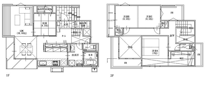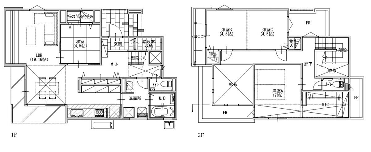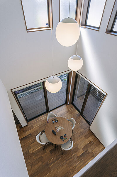 吹抜けがあり開放感を感じつつ、お庭やキッチンなどのプライバシーを確保できるような間取りとなっています。