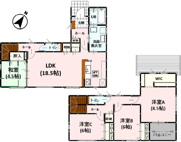 エコジョーズ LDK18帖以上 34坪 4LDK 駐車2台可 庭あり