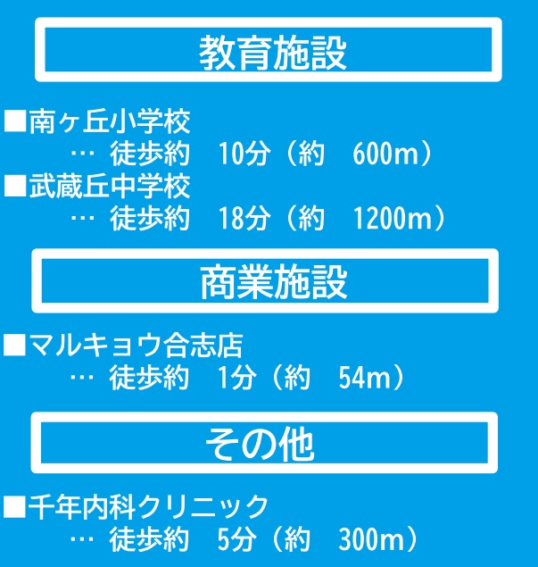 - ※物件から周辺のお店・施設までの距離は、利用が想定される道路を通行した場合の距離です。なお、必ずしも最短距離を保証するものではありません。