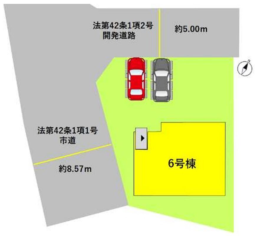 | 駐車場 | 4台 | 道路の幅員 | 北側5.0m公道 |